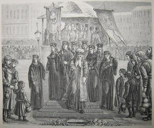 Keywords: BlesssingofWatersNeva.jpg The Great Blessing of Waters on the Neva River during Epiphany Das heutige Rußland Bilder und Schilderungen aus allen Theilen des Europäischen Zarenreichs Lankenau und Ölsnitz Leipzig 1876 1876 Uncertain Водосвятие на еве в день К ещения Господня Рисунок из немецкой книги « ынешняя Россия Рисунки и изоб ажения из всех частей ев опейского ца ства» Лейпциг 1876 PD-Art Neva River Holy water Blessings Orthodox monks Art of the Russian Orthodox Church Epiphany Great Blessing of Waters at Theophany Published in Leipzig