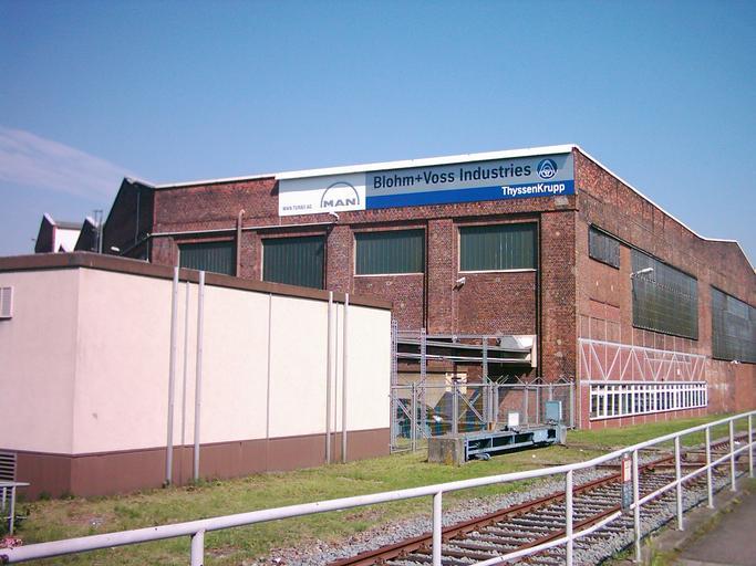 Keywords: Blohm+ Voss Hallen 007.jpg Blohm + Voss Hamburg-Steinwerder Blohm + Voss Hamburg Germany self-photographed 2007-05 GeorgHH Own work all rights released Public domain Blohm + Voss Betriebsgebäude