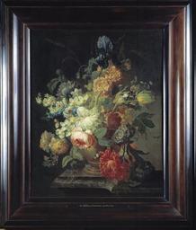 Keywords: Blomsterstycke. Olja på duk. Ev. Pieter Faes - Hallwylska museet - 31018.tif Den i Hallwylska museets katalog avbildade signaturen på urnan F S i monogram kan inte återfinnas I katalogen från 1930 upptas målningen som ett verk av Okänd konstnär 1600-talet Flandern I Musées Royaux des Beaux-Arts de Belgique Bryssel finns en version av detta motiv kat nr 6257 66 2x51 2 signerat och 1791 daterat av Pieter Faes Blomsterstycket i Hallwylska samlingen torde vara en egenhändig version inte en kopia av målningen i Bryssel något som inte är ovanligt när det gäller Faes - - The signature F S in monogram depicted on the urn in the museum catalogue is not to be found The 1928 catalogue gives this painting as a work by an Unknown Painter 17th century Flanders In Musées Royaux des Beaux-Arts de Belgique Brussels there is a version of this subjekt cat no 6257 66 2x51 2 signed and dated 1791 by Pieter Faes The flower-piece in the Hallwyl Collection is probably an independent version not a copy of the Brussels painting which is not uncommon where Faes is concerned original caption Blomsterstycke Olja på duk Ev Pieter Faes 1791 oil on canvas size cm 52 5 67 HWY Frederic Muller place of origin Flanders original filename hm_t11700 14123 inventory number HWY XXXII B 74 31018 PD Samuel Uhrdin <gallery caption Different images of same object > File Blomstermålning - Hallwylska museet - 47427 tif </gallery> Samuel Uhrdin Paintings in the Hallwylska museet Media contributed by LSH unmatched objKeyword Media contributed by LSH unmatched creator Pieter Faes Media contributed by LSH 2013-10 |
