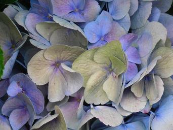 Keywords: bloom hydrangea flower blossom plant summer floral green spring garden petal leaf pink blue purple fresh bouquet colorful botanical decoration blooming bush vintage color delicate frilly texture design elegant soft decorative romantic