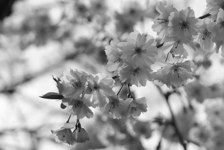 Keywords: blossom bloom bud pink cherry blossom nature spring flower plant aesthetic close shoots garden branch brown flora branches tree black and white