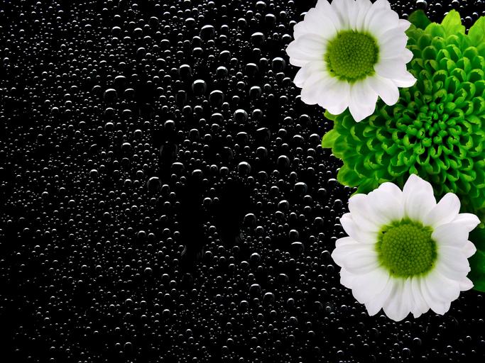 Keywords: blossom bloom flower nature plant summer spring flora white drip drop of water wet background background image map greeting card postcard chrysanthemum