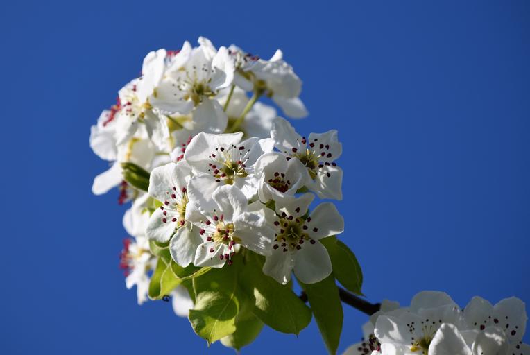 Keywords: blossom bloom spring apple tree full bloom blue sky