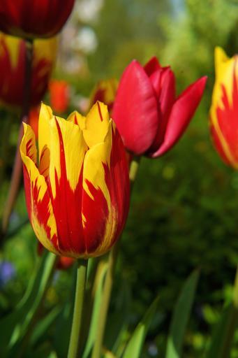 Keywords: blossom bloom tulip red yellow flower spring plant nature early bloomer colorful flora perspective beautiful sweet garden bloom close background decorative