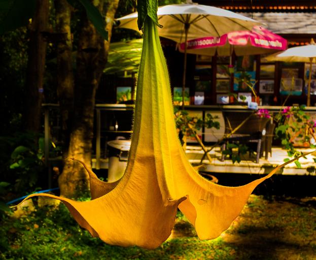 Keywords: blossom bloom yellow angel trumpet brugmansia aurea