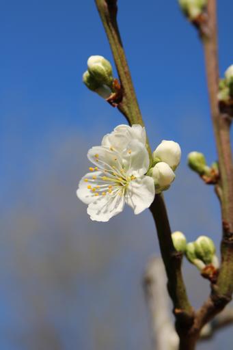 Keywords: blossom plum blossom spring flora branch blooming blossoming fresh garden springtime growth petal white season stamen