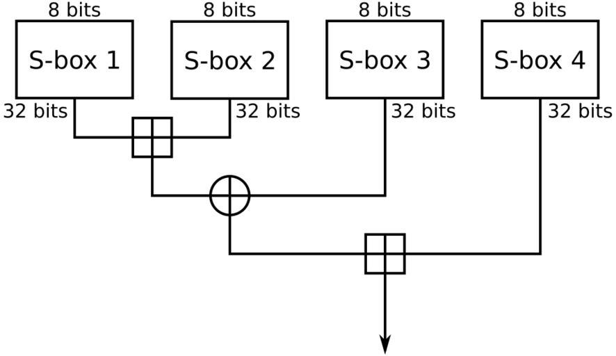 Keywords: Blowfish Feistel function (en).svg Translation possible The Feistel function of the Blowfish cipher Based upon Image Blowfish cipher InfoBox Diagram png by User Dake This version created in Inkscape by bdesham Blowfish cipher Feistel cipher diagrams |
