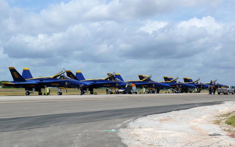 Keywords: Blue Angels-27527-1.jpg Six F/A-18 Hornets of the Blue Angels U S Navy Flight Demonstration Squadron on the flightline at Huntsville International being prepared for an airshow performance <br>Photo taken with a Panasonic Lumix DMC-FZ50 in Madison County AL USA http //www kenthomas us KenThomas us<br> personal website of photographer 2008-06-28 11 38-05 <sup>ISO 8601</sup> Ken Thomas This image is released to the public domain and therefore no permission or credit is required <br>Comments and/or feedback however are always welcome See my user page for contact info 34 38 33 76 N 86 46 43 76 W heading W Blue Angels F/A-18 Hornet Taken with Panasonic Lumix DMC-FZ50 Air shows in the United States |