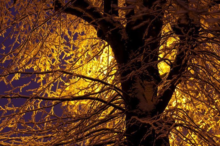 Keywords: blue branch branches cold dark frost light nature night outdoor park season shine snow tree winter