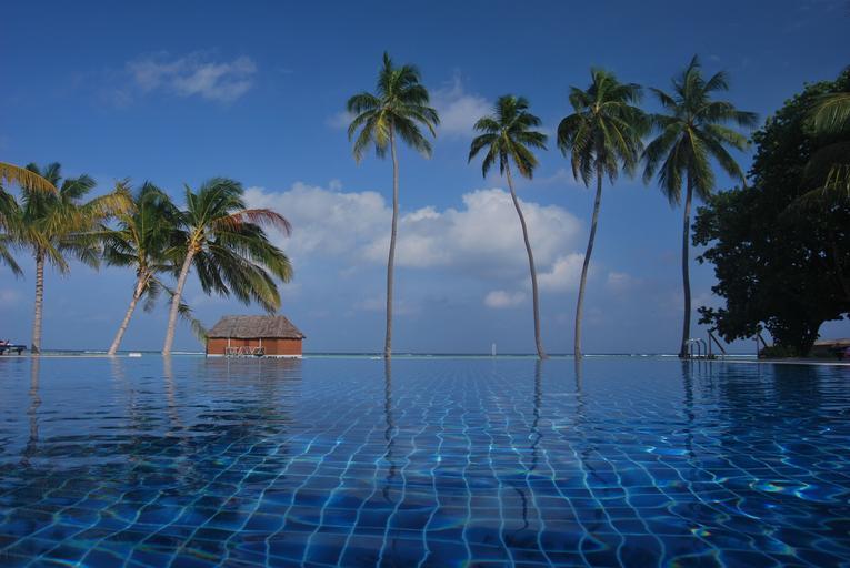 Keywords: blue exotic island maldives ocean palm trees paradise pool resort royal sky water waves travel