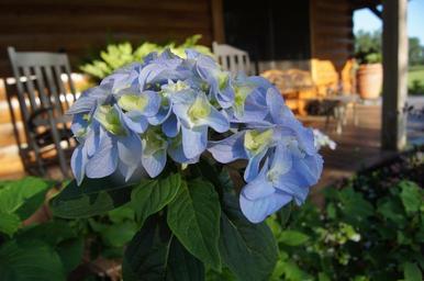 Keywords: blue flower porch hydrangea summer floral green blossom botanical rural outdoors natural garden countryside