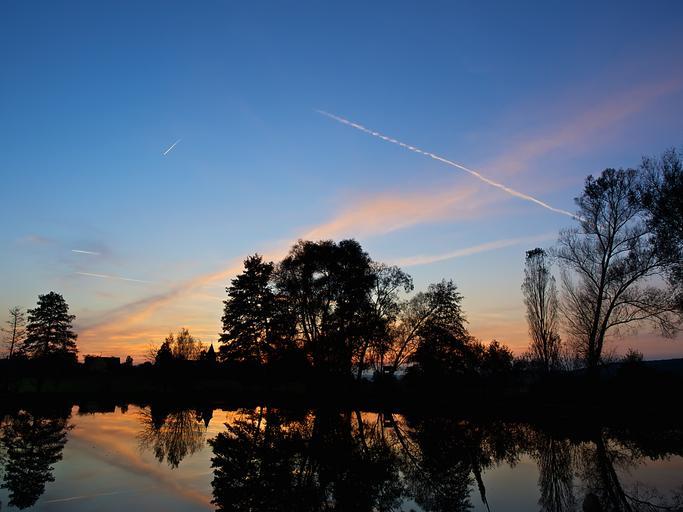 Keywords: blue hour lake water reflection mood sunset atmosphere romantic landscape silhouettes romance background dusk night tree quiet