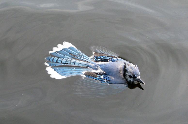 Keywords: blue jay cyanocitta cristata swimming mishap deer rock lake ontario canada