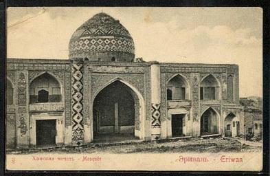 | Keywords: Blue Mosque in Yerevan (Postcard).jpg Blue Mosque of Yerevan Khan Mosque in Yerevan Eriwan present day Armenia ru Ханская мечеть в Э ивани ныне - в А мении az Xan məscidi İrəvan indiki Ermənistan 2012-02-08 n a Historical image PD-old PD-old Uploaded with UploadWizard Blue Mosque of Yerevan 01 Mosque domes Historical images of Armenia |