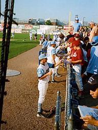 Keywords: Blue Rocks players signing autographs 2010-08.jpg Wilmington Blue Rocks players signing autographs Players enjoy a close relationship with some of their fans Many players live with a local family during the season http //www1 voanews com/english/news/usa/Future-Baseball-Stars-Mingle-With-Small-Town-Fans--100456819 html 2010-08 Mary Saner PD-USGov-VOA August 2010 in Delaware Files by User BrokenSphere Wilmington Blue Rocks Daniel S Frawley Stadium