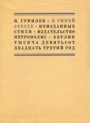 | Keywords: Blue Star by Gumilev - Front Cover.jpg Cover of Blue Star by Nikolay Gumilev 1923 Обложка сбо ника стихов иколая Гумилёва «К Синей звезде» 1923 http //gumilev ru/ 1923 author PD-old Books from Germany 1923 Book covers from Germany Nikolai Gumilev Published in Berlin Books from Germany in Russian |