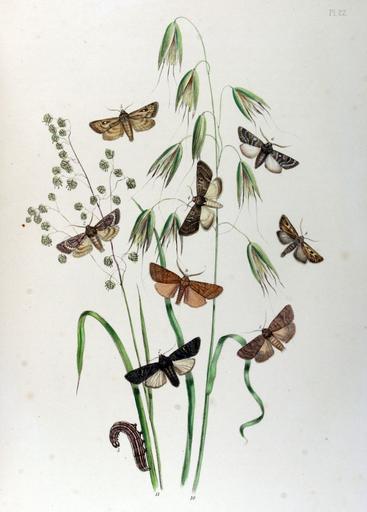 Keywords: BMAT1-22.jpg en Avena fatua; Briza media Lytaea umbrosa; Lytaea leucographa; Lytaea albimacula; Charaeas cespitis; Charaeas nigra; Cerapteryx graminis; Rusina ferruginea Plate 22 1845 British Moths and their Transformations Volume I 1845 http //caliban mpiz-koeln mpg de/westwood/moths1/high/IMG_3322 html Henry Noel Humphreys and John Obadiah Westwood PD-old Uploaded with UploadWizard British Moths and their Transformations Volume I