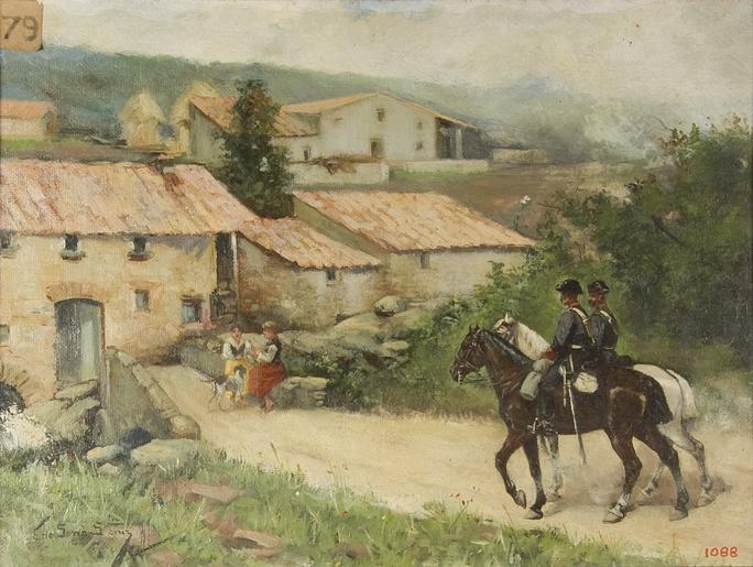 | Keywords: BMVB - Eduardo Soria Sta. Cruz - La guàrdia civil entrant a un poble - 1088.tif Artwork Creator Eduardo Soria Sta Cruz ca La guàrdia civil entrant a un poble pintura sobre tela Biblioteca Museu Víctor Balaguer 1899 pintura sobre tela Institution Biblioteca Museu Víctor Balaguer object history exhibition history Exposició 125è aniversari de l'edifici de la Biblioteca Museu Víctor Balaguer Biblioteca Museu Víctor Balaguer 2009 credit line accession number 1088 place of creation Biblioteca Museu Víctor Balaguer-cooperation PD-Art Paintings in the Biblioteca Museu Víctor Balaguer Mounted Guardia Civil Spain Police in art Realism in Spain |