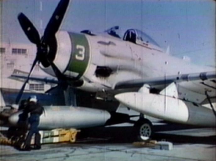 Keywords: BOAR loading on AD-7.png en BOAR BOmbardment Aerial Rocket unguided nuclear rocket being loaded on Douglas AD-7 Skyraider BuNo 142015 of VX-5 at NOTS China Lake Still from Secret City video U S Navy photo via http //www chinalakealumni org/1957 htm author 1957 U S Navy photograph PD-USGov-Military-Navy BOAR Bombardment Aerial Rocket AD-7 A-1J Skyraider Air Test and Evaluation Squadron 5 United States Navy Naval Air Weapons Station China Lake Still images from videos |