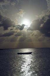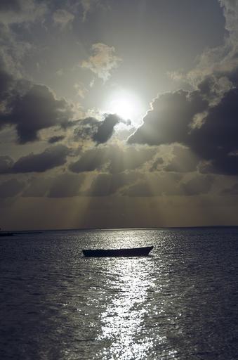 Keywords: boat sea ocean shore clouds sun sky sunlight sun ray sail sailboat marine seascape blue