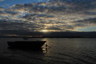 Keywords: boat sunrise water outdoor sea sky clouds ocean horizon