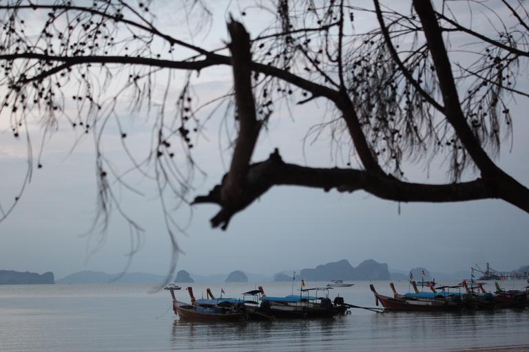 Keywords: boats motif tree blue hour sea
