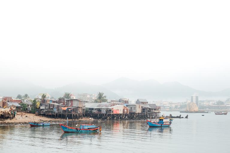 Keywords: boats river travel tropical tourism huts stilt houses fishing village village