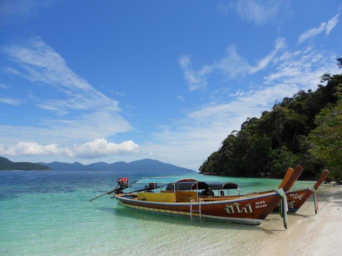 Keywords: boats thailand sea tropical ocean island blue sky paradise exotic coast shore pacific tropics coastline scenic seascape nature travel