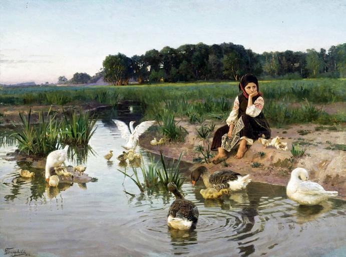 Keywords: Bodarevsky 013.jpg Artwork Creator Nicholas Bodarevsky en Ukrainian Girl Tending Geese 1892 oil canvas cm 103 76 Private collection accession number object history credit line http //www sothebys com/app/live/lot/LotDetail jsp lot_id 159504283 PD-old-70 Nikolai Kornilievich Bodarevsky Paintings of Ukrainian peasants Images from Sotheby's Gooseherds in art Location of museum or gallery missing Geese of Ukraine |