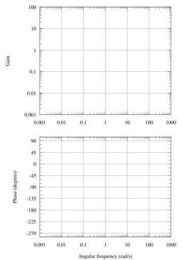 Keywords: Bode plot template.svg bode plot created with gnuplot Own 2007-06-11 Mik81 Image Bode plot template pdf set terminal svg enhanced size 875 1250 fname Times fsize 25 set terminal postscript enhanced portrait dashed lw 1 Helvetica 14 set output bode ps ugly part of something G w n 0 w n + 100000 1 / sqrt 1 + w 2 n dB x 0 + x + 100000 20 log10 abs x P w w 0 + 200 -atan w 180/pi Gridlines set grid Set x axis to logarithmic scale set logscale x 10 set logscale y 10 No need for a key set nokey 0 1 -25 Frequency response's line plotting style set style line 1 lt 1 lw 2 Asymptote lines and slope lines are the same arrow style set style line 3 lt 3 lw 1 set style arrow 3 nohead ls 3 -3 dB arrow style set style line 4 lt 4 lw 1 set style arrow 4 head filled size screen 0 02 15 45 ls 4 Separator between passband and stopband line style set style line 2 lt 2 lw 1 set style arrow 2 nohead ls 2 set multiplot Magnitude response set size 1 0 5 set origin 0 0 5 Set range of x and y axes set xrange 0 001 1000 set yrange 0 001 100 set yrange -50 150 Create x-axis tic marks once per decade every multiple of 10 set xtics 10 set ytics 10 Use 10 x-axis minor divisions per major division set mxtics 10 set mytics 10 Axis labels set ylabel Gain plot dB G x 1 ls 1 title 1st-order response Phase response set size 0 967 0 45 set origin 0 033 0 05 unset logscale y Set range of x and y axes set yrange -285 105 Create y-axis tic marks every 15 degrees set ytics 45 set mytics 3 Axis labels set ylabel Phase set xlabel Frequency plot P x ls 1 title Phase response unset multiplot Gnuplot diagrams Bode plots |