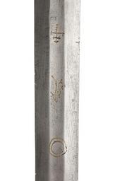 Keywords: Bödelssvärd - Livrustkammaren - 102649.tif LSH artwork sv Fäste av stål Hög fyrsidig knapp avsmalnande nedåt och med fasade hörn Raka släta parerstänger avsmalnande mot krysset och med runt tvärsnitt Kavellindning av tvinnad ståltråd upptill och nertill avslutad av krans <br/>Klinga tvåeggad bred med tvärt avskuren något bågformig ytterände Starka delen med flack hålkäl vari på båda sidor inlagt en springande ulv Passauer Wolf märke för klingsmederna i Passau samt två koncentriska ringar <br/>Ur Tidörustkammaren gåva 1858 till Livrustkammaren original caption Bödelssvärd<br/> Nyckelord Föremålsbild Klinga century 16 g 2040 size mm 832 klinga size mm 55 klinga size mm 1064 LRK Axel Oxenstierna af Södermöre Riddartid - sköna riddare och tappra jungfrur 2002 Otroligt 2015 Livrustkammaren place of origin DE original filename lm_dig16514 40157 inventory number LRK 3611 102649 CC-BY-SA Jens Mohr <gallery caption Different images of same object > File Klinga på bödelssvärd 1500-tal - Livrustkammaren - 102650 tif File Bödelssvärd 1500-tal - Livrustkammaren - 102646 tif File Bödelssvärd Tyskland 1500-talet - Livrustkammaren - 789 tif File Bödelssvärd 1500-tal - Livrustkammaren - 102644 tif </gallery> blades Executioner's sword images from Livrustkammaren Jens Mohr Media contributed by LSH dim-with multiple size templates Media contributed by LSH 2015-11 Color images from Livrustkammaren |