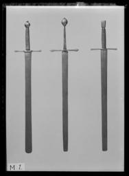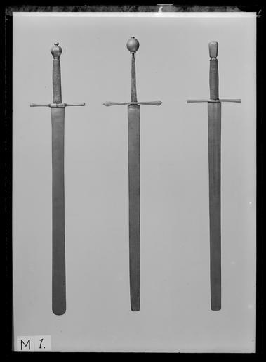 Keywords: Bödelssvärd, Tyskland 1500-talet - Livrustkammaren - 789.tif Fäste av stål Hög fyrsidig knapp avsmalnande nedåt och med fasade hörn Raka släta parerstänger avsmalnande mot krysset och med runt tvärsnitt Kavellindning av tvinnad ståltråd upptill och nertill avslutad av krans <br/><br/>Klinga tvåeggad bred med tvärt avskuren något bågformig ytterände Starka delen med flack hålkäl vari på båda sidor inlagt en springande ulv Passauer Wolf märke för klingsmederna i Passau samt två koncentriska ringar original caption century 16 size mm 1064 size mm 832 klinga size mm 55 klinga g 2040 LRK Axel Oxenstierna af Södermöre Riddartid - sköna riddare och tappra jungfrur 2002 place of origin DE original filename LN_B05010_007890 40157 inventory number LRK 3611 789 CC0 Bödelssvärd Tyskland 1500-talet - Livrustkammaren - 789-negative tif Executioner's sword images from Livrustkammaren Media contributed by LSH dim-with multiple size templates Media contributed by LSH 2013-10 |