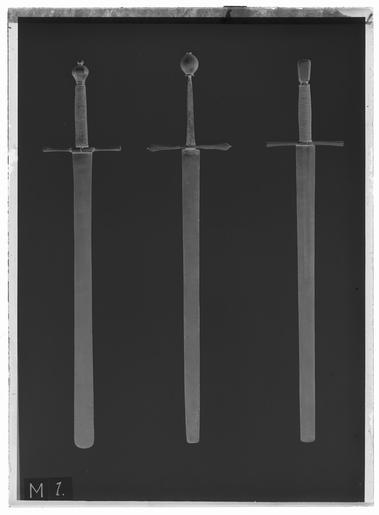 Keywords: Bödelssvärd, Tyskland 1500-talet - Livrustkammaren - 789-negative.tif Fäste av stål Hög fyrsidig knapp avsmalnande nedåt och med fasade hörn Raka släta parerstänger avsmalnande mot krysset och med runt tvärsnitt Kavellindning av tvinnad ståltråd upptill och nertill avslutad av krans <br/><br/>Klinga tvåeggad bred med tvärt avskuren något bågformig ytterände Starka delen med flack hålkäl vari på båda sidor inlagt en springande ulv Passauer Wolf märke för klingsmederna i Passau samt två koncentriska ringar original caption century 16 size mm 1064 size mm 832 klinga size mm 55 klinga g 2040 LRK Axel Oxenstierna af Södermöre Riddartid - sköna riddare och tappra jungfrur 2002 place of origin DE original filename LN_B05010_007890 40157 inventory number LRK 3611 789 CC0 Bödelssvärd Tyskland 1500-talet - Livrustkammaren - 789 tif |