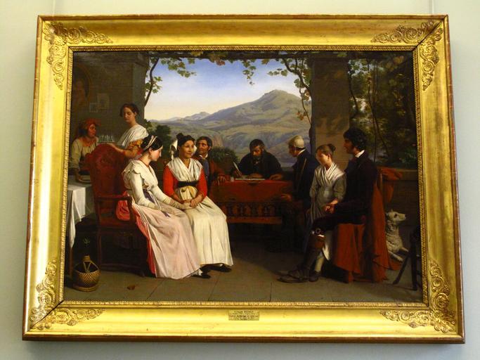 Keywords: Bodinier - Contrat de mariage en Italie (cadre).JPG Artwork Creator Guillaume Bodinier 1831 oil on canvas Size m 1 38 1 01 Museum Louvre Sully - 2 e étage - Le paysage autour de 1800 - Salle 59 Joconde 000PE013489 object history credit line Acquis au Salon de 1831 accession number INV 2673 Sammyday 2012-03-17 PD-old-100 other versions <gallery>File Guillaume Bodinier - Contrat de mariage en Italie jpg lower resolution without frame File Bodinier - Contrat de mariage en Italie jpg without frame</gallery> Uploaded with UploadWizard French paintings in the Louvre - Room 59 Taken with Canon PowerShot G10 Guillaume Bodinier Oil paintings of people Marriage contracts in art 1831 paintings Salon of 1831 ImageNote 1 2015 2782 442 237 4416 3312 2 fr <center>Guillaume BODINIER<br/><small>Angers 1795 - Angers 1872</small><br/>Contrat de mariage en Italie <small>1831<br/>Acquis au salon de 1831<br/>INV 2673</small> ImageNoteEnd 1 |