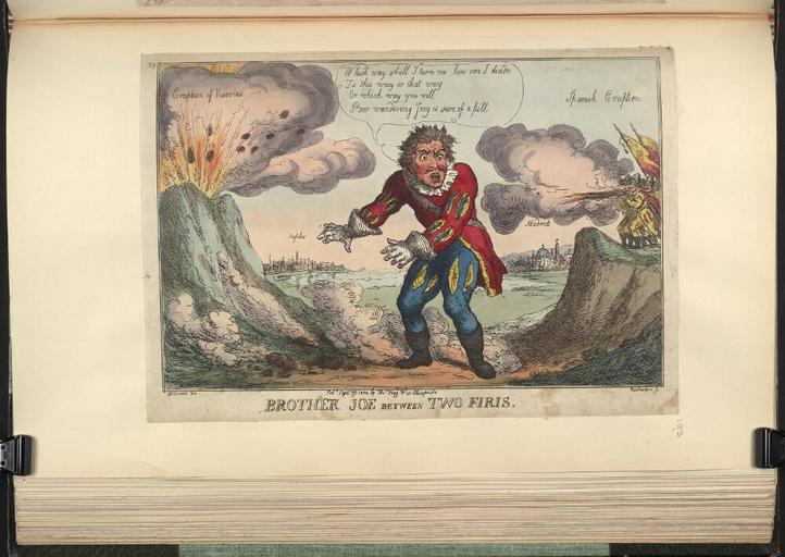 | Keywords: Bodleian Libraries, Brother Joe between two firis sic.jpg accession number Curzon b 26 193 Creator George Moutard Woodward artist Satire on the Peninsular war British political cartoon ; Joseph Bonaparte between the eruption of the volcano Vesuvius and bombardment by Spanish troops ; Not in BMC Publisher's number 59 240 x 342 sheet mm exhibition history Source filename politi004-ayj-0001-0 object history object type Licensed-PD-Art PD-old-100 cc-by-4 0 place of creation London England Thomas Tegg place of discovery http //digital bodleian ox ac uk/inquire/p//1d0c829d-85da-4c97-9f30-5857c2b6c42d Digital Bodleian Template Bodleian Libraries Brother Joe between two firis sic Uploaded with GWToolset Bodleian Libraries Brother Joe between two firis sic http //iiif bodleian ox ac uk/iiif/image/1d0c829d-85da-4c97-9f30-5857c2b6c42d/full/ 1000 1000/0/default jpg Files uploaded by the Bodleian Libraries' Wikimedian In Residence Napoleonic Wars Peninsular War Joseph Bonaparte Curzon Collection |