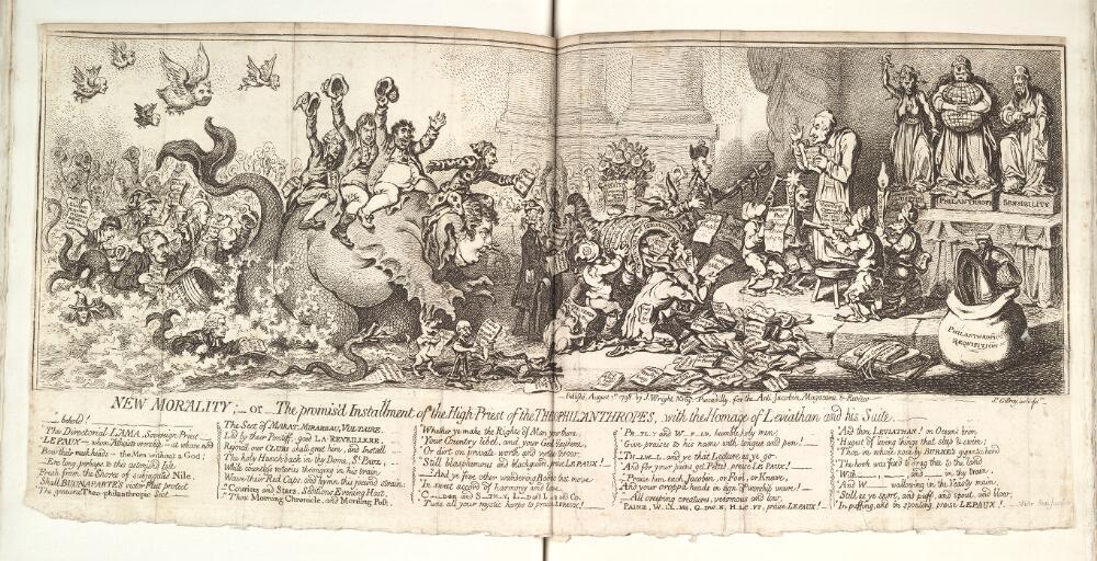 | Keywords: Bodleian Libraries, New morality or - The promis'd installment of the highpriest of the Theophilanthropes, with the homage of Leviathan and.jpg accession number Curzon b 3 101 Satire on radical reformers and the French Revolution British political cartoon 615 x 270 image and text mm exhibition history Source filename politi004-ajt-0001-0 object history object type <gallery>File Bodleian Libraries New morality or - The promis'd installment of the high priest of the Theophilanthropes with the homage of Leviathan an jpg</gallery> Licensed-PD-Art PD-old-100 cc-by-4 0 place of creation London England J Wright place of discovery http //digital bodleian ox ac uk/inquire/p//35e7b61c-1ada-4662-8ce0-fe191c34ebe0 Digital Bodleian Template Bodleian Libraries New morality; -- or -- The promis'd installment of the high-priest of the Theophilanthropes with the homage of Leviathan and his suite-Anti-Jacobin Magazine and Review Uploaded with GWToolset Bodleian Libraries New morality or The promis'd installment of the highpriest of the Theophilanthropes with the homage of Leviathan and http //iiif bodleian ox ac uk/iiif/image/35e7b61c-1ada-4662-8ce0-fe191c34ebe0/full/ 1000 1000/0/default jpg Files uploaded by the Bodleian Libraries' Wikimedian In Residence Anglo-French War Louis-Marie de La Révellière-Lépeaux Robert Southey Samuel Taylor Coleridge Lloyd Charles 1775-1839 Lamb Charles 1775-1834 Erasmus Darwin Joseph Priestley in art Wakefield Gilbert 1756-1801 John Russell 6th Duke of Bedford John Thelwall Charles James Fox George Tierney Nicholls John 1745 -1832 Thomas Erskine 1st Baron Erskine Samuel Whitbread 1764 “1815 Charles Howard 11th Duke of Norfolk George Shuckburgh-Evelyn Edward Smith-Stanley 12th Earl of Derby George Byng 1764-1847 John Courtenay politician William Petty 2nd Earl of Shelburne Charles Stanhope 3rd Earl Stanhope John Horne Tooke Taylor Michael Angelo 1757-1834 James Maitland 8th Earl of Lauderdale Thomas Paine Thomas Holcroft William Godwin David Williams philosopher Radicalism and reform Sedition and treason Book pages Newspapers Monsters Education and science Curzon Collection 1798 cartoons |