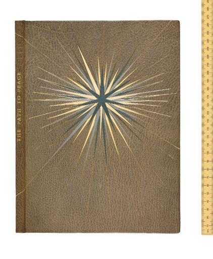 | Keywords: Bodleian Libraries, The path to peace.jpg Elizabeth Greenhill binding English 1962 Elizabeth Greenhill 1907 “2006 Pale grey Oasis goatskin; the front cover decorated with a star design of blue and white onlays with gold and platinum; lower star design in gilt only repeated on front blue leather doublure Elizabeth Greenhill was noted for her bold designs and innovative use of coloured leathers Also shown is the original design for this binding taken from her archive recently acquired by the Bodleian exhibition history Spine and front board source filename oulis2009-atb-0030-0 tif object history object type Licensed-PD-Art PD-old-100 cc-by-4 0 place of creation place of discovery http //digital bodleian ox ac uk/inquire/p//dab33394-8701-4b3a-9c94-c69cf2bfb9d9 Digital Bodleian Template Bodleian Libraries The path to peace Uploaded with GWToolset Bodleian Libraries The path to peace http //iiif bodleian ox ac uk/iiif/image/dab33394-8701-4b3a-9c94-c69cf2bfb9d9/full/ 1000 1000/0/default jpg Files uploaded by the Bodleian Libraries' Wikimedian In Residence Bookbinding |