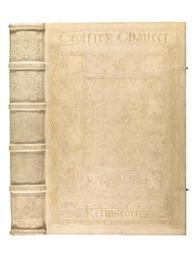 | Keywords: Bodleian Libraries, Works 5.jpg The Doves Bindery English London 1899 White pigskin blindtooled on front board with large central diaper panel in a border of vines; the back is covered with a very large lozenge and leaf pattern A masterpiece of 19th century binding the 'Kelmscott Chaucer' was produced by the Doves Bindery in a variety of trade and special bindings This example was designed by Morris in collaboration with T J CobdenSanderson who had established the Doves Bindery in 1893 opposite the Kelmscott Press Broxb 67 7 exhibition history Spine and front board source filename oulis2009-atb-0091-0 tif object history object type Licensed-PD-Art PD-old-100 cc-by-4 0 place of creation place of discovery http //digital bodleian ox ac uk/inquire/p//3dad0079-6dd6-415d-b674-329299246298 Digital Bodleian Template Bodleian Libraries Works Uploaded with GWToolset Bodleian Libraries Works_5 http //iiif bodleian ox ac uk/iiif/image/3dad0079-6dd6-415d-b674-329299246298/full/ 1000 1000/0/default jpg Files uploaded by the Bodleian Libraries' Wikimedian In Residence Bookbinding |