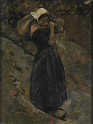 Keywords: Boerin met een zak Rijksmuseum SK-A-4734.jpeg accession number SK-A-4734 nl Een boerin met klompen en een witte muts sjouwt een zak over de schouder In de omgeving van Hattem Height cm 37 Width cm 28 lijst Height cm 40 5 lijst Width cm 31 5 lijst Dikte cm 1 2 exhibition history 2012-2016 Henriette en Richard Roland Holst - Het gastenboek van de Buissche Heide Zundert Institution Rijksmuseum object history Acquisition 1938 object type PD-US PD-old Data and photography rights All data and all images made available through the API are either in the public domain or are subject to a CC0 license https //www rijksmuseum nl/en/api/terms-and-conditions-of-use cc-zero place of creation http //www rijksmuseum nl/collectie/SK-A-4734 Boerin met een zak Q17340747 Uploaded with GWToolset Boerin met een zak Rijksmuseum SK-A-4734 http //www rijksmuseum nl/media/assets/SK-A-4734 Images uploaded by Fæ Images from the Rijksmuseum Paintings by Richard Roland Holst in the Rijksmuseum Amsterdam Richard Roland Holst