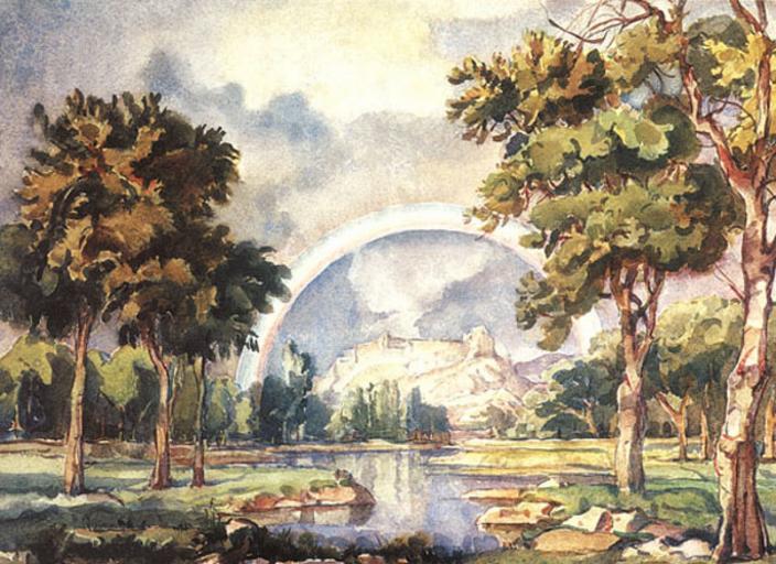| Keywords: Bogaevsky Rainbow.jpg Bogaevsky Konstantin Fyodorovich Alternative names Богаевский Константин Фёдо ович 1872-01-24 Theodosia Russia 1943-02-17 Theodosia Russia Saint Petersburg Moscow Theodosia PD-Ukraine Konstantin Bogaevsky Rainbow 1931 Downloaded from http //smallbay ru/bogaevsky html Rainbows in paintings 1931 paintings from Russia |