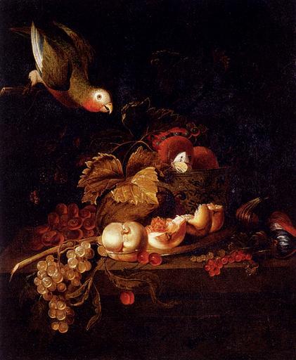 Keywords: Bogdány Still Life Of Grapes, ...Resting On A Table With A Parrot.jpg Artwork Creator Jakab Bogdány Oil on canvas Size cm 62 9 75 Private collection object history credit line accession number http //www artrenewal org/ artrenewal org http //www artrenewal org/pages/artwork php artworkid 19272 size large Info http //www artrenewal org/artwork//581/3581/19272/still_life_of_grapes _a_halved_peach_and_cherries_resting_on_a_table_with_a_parrot-large jpg Pic PD-old-100 Paintings by Jakab Bogdány in private collections 17th-century oil on canvas paintings 17th-century still life paintings of fruits 18th-century oil on canvas paintings Pictures from the Art Renewal Center 18th-century still life paintings of fruits Oil still life paintings Still life paintings with living parrots |