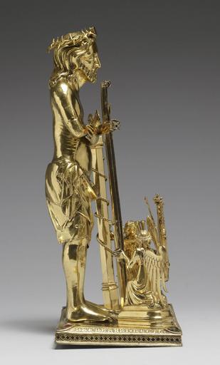 | Keywords: Bohemian - Reliquary with the Man of Sorrows - Walters 57700 - Right Side.jpg The image of the Man of Sorrows is a distillation of the events of Christ's Passion Christ contemplates with sorrow the instruments of his suffering the cross and hammer whips nails column of the Flagellation and the dice thrown by the soldiers for his garments The gabled container held by an angel once housed a thorn believed to be from Christ's Crown of Thorns while the hinged cross and column probably held pieces of wood believed to be from Christ's cross and from the column against which he was whipped According to an inscription on the base the reliquary was ordered by the bishop of Olomouc in Moravia to house the Holy Thorn It was surely a present for Holy Roman Emperor Charles IV Both men's coats of arms those of Moravia and Bohemia are on the base and the thorn was already in the emperor's famous collection of relics as a gift from the king of France As Charles reigned over both Bohemia and Moravia only from 1347 to 1349 the piece dates to this time The sophisticated workmanship is characteristic of objects created for the imperial court in Prague between 1347 1349 Medieval gilded silver silver champlevé enamel glass paste imitation ruby H 11 5/8 x W at wings 8 3/8 x D 5 in 29 53 x 21 27 x 12 7 cm accession number 57 700 29555 Jacques Seligmann Paris date and mode of acquisition unknown Henry Walters Baltimore June 9 1903 by purchase Walters Art Museum Henry Walters Acquired by Henry Walters 1903 Transcription Majuscule inscription on the pedestal HANC MONSTRANCIAM CUM SPINA CHORONE DOMINI DNS IOHANNES OLOMUCZENSIS EPISCOPUS PREPARARI FECIT Translation John the bishop of Olmütz commissioned this monstrance with the thorn of the crown of Christ The Way to Heaven Relic Veneration in the Middle Ages Museum Catharijneconvent Utrecht; Nieuwe Kerk Amsterdam Amsterdam 2000-2001 The International Style The Arts in Europe Around 1400 The Walters Art Gallery Baltimore 1962 Kaiser Karl IV 1316-1378 Bayerisches Nationalmuseum Munich 1978 Die Parler und der Schöne Stil 1350-1400 Schnütgen-Museum Cologne 1978-1979 Reliquaries and Ritual Medieval Objects of Devotion The Walters Art Gallery Baltimore 1984-1985 Highlights from the Collection The Walters Art Gallery Baltimore 1998-2001 Prague The Crown of Bohemia The Metropolitan Museum of Art New York; Prague Castle Prague 1 2005-2006 Silesia - A Pearl in the Bohemian Crown Three Periods of Flourishing Artistic Relations Waldstein Riding School Prague Prague 2006-2007 Treasures of Heaven The Cleveland Museum of Art Cleveland; The Walters Art Museum Baltimore; The British Museum London 2010-2011 place of origin Prague Czech Republic Walters Art Museum license Bohemian Reliquary with the Man of Sorrows in the Walters Art Museum Medieval reliquaries Bohemia Media contributed by the Walters Art Museum needs category review Media contributed by the Walters Art Museum needs artist review |