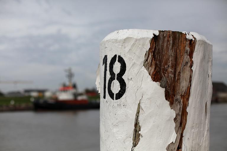 Keywords: bollard water wooden posts anchorage pier coast brunsbüttel germany pilot