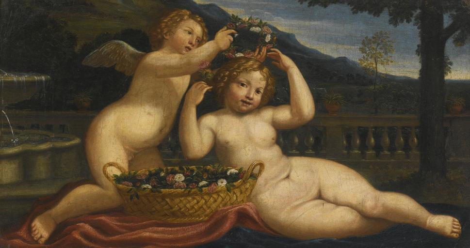 | View Original: | Bolognese_School_17th_Century_Putto_Crowning_Another_Putto_with_a_Garland_of_Flowers,_a_Landscape_Beyond.jpg (2000x1057) | |||