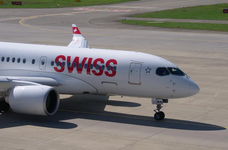 Keywords: bombardier cs100 swiss airlines aircraft airport zurich zrh airport zurich switzerland transport fly jet aviation turbine bombardier cs100 swiss tarmac