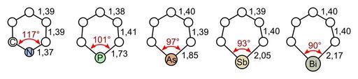 | Keywords: Bond lengths of group 15 heterobenzenes.svg Bindungslängen und -winkel von verschiedenen Heterobenzolen der 15 Gruppe von links nach rechts Pyridin Phosphabenzol Arsabenzol Stilbabenzol und Bismabenzol Bond lengths and angles of different group 15 heterobenzenes from left to right pyridine phosphabenzene arsabenzene stilbabenzene and bismabenzene own Zahlenwerte entnommen aus Christoph Elschenbroich Organometallchemie 6 Aufl 2008 Teubner Seite 218 GBS wtuuzCfNTCcC numerical values taken from Christoph Elschenbroich Organometallchemie 6th ed 2008 Teubner page 218 GBS wtuuzCfNTCcC 2010-02-25 Sponk <span class signature-talk >talk</span> Version mit Benzol als Vergleich Bond_lengths_of_group_15_heterobenzenes_and_benzene svg Version with benzene for comparison Bond_lengths_of_group_15_heterobenzenes_and_benzene svg Heterocyclic compounds with 1 ring |