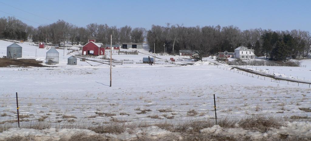 | Keywords: Bonderson Farm east farmyard 1.JPG Eastern portion of the Ben Bonderson Farm in Dakota County Nebraska about four miles east of Emerson Nebraska ; seen from the south The farm is listed in the National Register of Historic Places At left the three cylindrical structures with conical tops are a silo in the center and a grain bin on either side The small red building behind them is a granary The large red building with the cupola is a drive-in crib barn To its right directly behind the wooden pole in foreground is a red cow shed The structure to its right with two large dark square openings is the machine shed In front of and slightly to the right of that is a storage shed On the right side of the lane partly obscured by a tree is a chicken coop and garage The large white building at right is the farmhouse; behind it and to its left is the washhouse own 2010-03-04 Ammodramus Pictures by Ammodramus Taken with Panasonic Lumix DMC-FZ20 Ben Bonderson Farm |