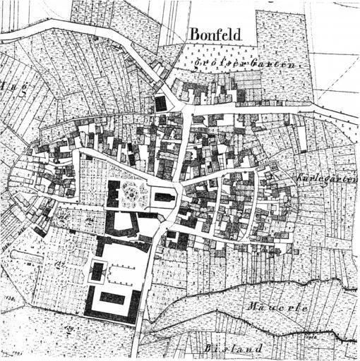 | Keywords: Bonfeld - Ortsplan aus dem 19. Jahrhundert.png Bonfeld Baden-Württemberg Germany from the 19th century probably a part of the Württembergische Flurkarte 1 2 5000 which was created about 1830 Reproduction after Heimatbuch Bonfeld 2000 fig 119 on page 205 There are no copyright problems because the reproduction in the Heimatbuch is a simple reproduction which does not create any copyright and the creator of the original map is definitely dead for more than 100 years Bonfeld Baden-Württemberg aus dem 19 Jahrhundert wahrscheinlich aus der Württembergischen Flurkarte 1 2 5000 die um 1830 entstand Abbildung aus dem Heimatbuch Bonfeld 2000 Abb 119 auf Seite 205 Es gibt keine Copyright-Probleme da die Wiedergabe im Heimatbuch eine einfache Reproduktion ist die keine neuen Rechte erzeugt und der Urheber der originalen Karte auf jeden Fall über 100 Jahre tot ist Scanned from Heimatbuch Bonfeld 2000 fig 119 on page 205 by Aristeas author century 19 probably ca 1830 Bonfeld Württembergische Flurkarte 1 2 500 19th-century maps of Baden-Württemberg PD-old-100 ImageNote 1 2666 3346 491 320 6367 6394 2 Evangelische Kirche ImageNoteEnd 1 ImageNote 2 1728 3090 587 650 6367 6394 2 Oberschloss ImageNoteEnd 2 ImageNote 3 1770 3687 1035 639 6367 6394 2 Meierei beim Oberschloss ehemaliges Altes Schloss ImageNoteEnd 3 ImageNote 4 1418 4518 640 597 6367 6394 2 Unterschloss 1956 ausgebrannt 1971 gesprengt ImageNoteEnd 4 |