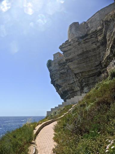 Keywords: bonifacio cliffs overhang high landscape corsica seaside scenery scenic path