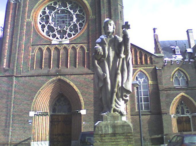 Keywords: Bonifatiuskerk Leeuwarden.jpg Beeld van Christus Koning bij de ingang van de Sint-Bonifatiuskerk te Leeuwarden Het beeld is van Wim Harzing de kerk naar het ontwerp van Pierre Cuypers Statue of Christ the King at the entrance of the Saint Boniface Church in Leeuwarden the Netherlands The statue is a work of Wim Harzing the church is a design by Pierre Cuypers own 2006-03 Khx023 Sint-Bonifatiuskerk Leeuwarden Statues in Leeuwarden Wim Harzing |